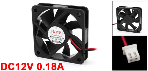 Product Name Cooling Fan Voltage DC12V Rated Current 0.18A External Material Plastic Color Black Blades Number 7 Connector JST Connectors Size 60 x 60 x 15mm/ 2.4" x 2.4" x 0.6" (L*W*H) Cable Length 27cm/ 11" Mounting Hole Dia. 4.5mm/0.18" Mounting Hole Center Distance 5 x 5cm/ 2" x 2" (L*W) Net Weight 29g Package Content 1 x Cooling Fan - Reviews