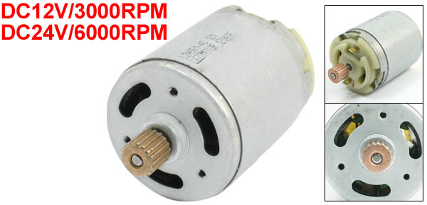 DetailsDC 12V/3000RPM 24V/6000RPM 4mm Shaft Dia Pernament Magnetic Motor  Product Name DC Motor Rated Voltage & Speed DC12V/3000RPM DC24V/6000RPM Body Size 46 x 59mm / 1.8" x 2.3"(D*H) Shaft Size 91 x 4mm/ 3.6" x 0.16"(L*D) Vibration Size(Each) 11 x 10mm/0.43" x 0.4"(D*H) Total Length 91mm / 3.6" Main Color Silver Tone Material Metal Weight 326g Package 1 x DC Motor