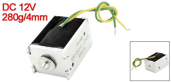 Product Name DC Solenoid Electromagnet Rated Voltage DC 12V Type Pull Rated Current 350mA Power 4.23W Force& Stroke 280g/4mm