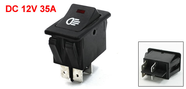 Product Name Fog Light Switch Position On-Off Terminals Number 4 Rating Voltage & Current DC 12V 35A Indicator Light Color Red Size 38 x 22 x 41mm/1.5" x 0.9" x 1.6" (L*W*H) Color Black Material Plastic, Metal Weight 17g Package Content 1 x Fog Light Switch - Reviews