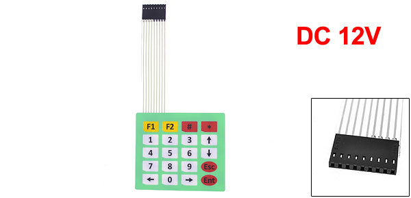 Product Name Membrane Switch Key Type 4x4 Voltage DC 12V Current 30mA Contact Resistance >=100 Ohm Force 250-350g Contact Bounce >1s Pad Size 85 x 73 x 0.8mm/ 3.3'' x 2.87'' x 0.03''(L*W*T) Cbale Length 103mm/ 4'' Connector Pitch 2.54mm/ 0.1'' Material Plastic Weight 8g Package Content 1 x Membrane Switch - Reviews