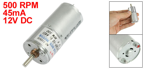 Product Name Gear Motor Rated Voltage DC 12V Rated Current 45mA Rated Torque 0.33Kg.cm Rated Speed 500 RPM Ratio 10.6:1 Shaft Size 12 x 4mm/0.47'' x 0.16''(L*D) Motor Body Length 50mm/2" Motor Body Diameter 25mm/1" Thread Diameter 2.5mm/0.1" Total Length(Included Pin) 68mm/2.7" Material Metal, Electronic Parts Color Silver Tone Weight 85g Package Content 1 x Gear Motor - Reviews