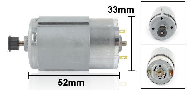 Brand DMiotech Net Weight 156g Speed 3000-12000RPM Country of Manufacture CHINA Package Content 1x DC Geared Motor Voltage DC 12V-48V Material Metal Gear Tooth Pitch 1mm/0.04" Gear Tooth Dia 0.2mm Gear Size 10 x 8 x 6mm/0.4" x 0.3" x 0.24"(Max.D*D*H) Body Size 33 x 52mm/1.3" x 2"(D*L) - Reviews