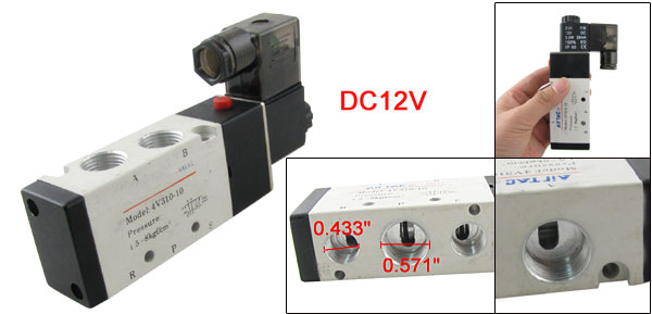 Type 2 Position 5 Way Material Resin, Plastic Working Voltage/Current/Power DC 12V 9mA 2.0W Temperature Rise 35°C Operating Pressure 1.5 ~ 8kgf/cm2 AirInlet Diameter 1.45cm / 0.571" Air Exhaust Diameter 1.1cm / 0.433" Black Pull Into Diameter 1cm / 0.393" Wiring Form