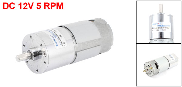 Main Color Silver Tone, Gray Brand DMiotech Net Weight 325g Rated Voltage DC 12V Country of Manufacture CHINA Package Content 1 x Gear Box Motor Shaft Size 15 x 6mm/0.6" x 0.2"(L*D) Material Gear Box Motor Rated Speed 5 RPM Total Length(Included Pin) 12cm/ 4.7" Body Size 98 x 36mm/ 3.9" x 1.4"(L*D) - Reviews