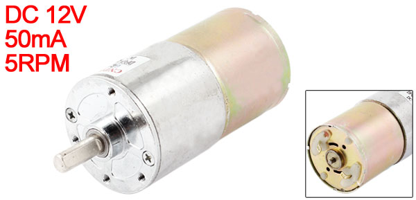 Product Name Gear Motor Rated Voltage DC 12V Rated Current 50mA Rated Torque 31Kg.cm Rated Speed 5 RPM Ratio 708:1 Shaft Size 15 x 6mm/0.6" x 0.24" (L*D) Motor Body Length 65mm/2.6" Motor Body Diameter 37mm/1.5" Thread Diameter 2.5mm/0.1" Total Length(Included Pin) 91mm/3.6" Material Metal, Electronic Parts Color Silver Tone Weight 208g Package Content 1 x Gear Motor - Reviews