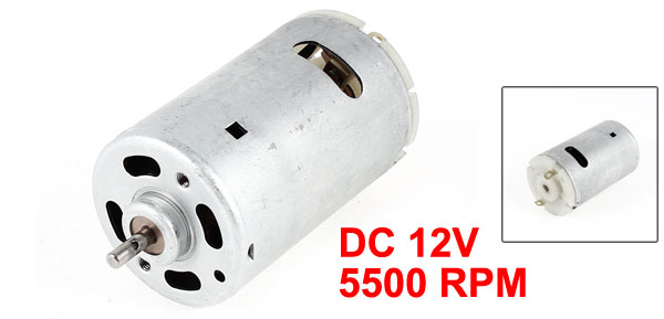 Product Name DC Motor Model JRS-555 Rated Voltage DC 12V Speed 5500 RPM Body Size 57 x 36mm/ 2.2" x 1.4" (L*D) Shaft Diameter 3mm Shaft Length 9mm/0.35" Main Color Silver Tone Material Metal, Electronic Parts Weight 184g Package 1 x DC Motor - Reviews