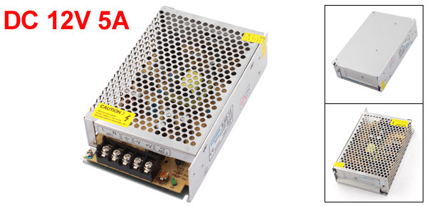 50/60HzOutput DC 12V, 5A Power 60W Terminal Quantity 5 Total Size 16 x 10 x 4.2cm / 6.3" x 4" x 1.65" (L*W*T) Case Material Metal Main Color Silver Tone Net Weight 313g Package Content 1 x Switching Power Supply - Reviews