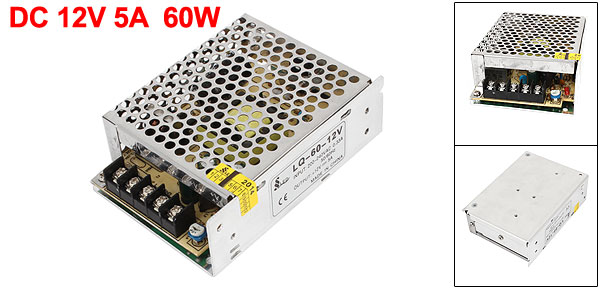 Output DC 12V, 5A DC Output Power 60W Size 11 x 7.8 x 3.5cm/ 4.3" x 3" x 1.4" (L*W*T) Case Material Metal Main Color Silver Tone Net Weight 205g Package Content 1 x Switching Power Supply - Reviews