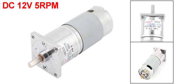 Shaft Diameter 6mm/ 0.24" Main Color Silver Tone Brand DMiotech Net Weight 336g Total Length 120mm / 4.7" Speed 5 RPM Rated Voltage DC 12V Country of Manufacture CHINA Package Content 1 x DC Geared Box Motor Material Metal, Electronic Parts Gearbox Part Diameter 37mm / 1.5" Squre Size 40 x 40mm/1.6" x 1.6"(L*W) - Reviews