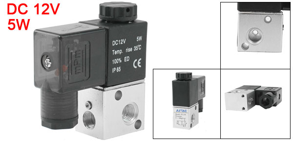 DC 12V 5W 1/8"PT Thread 2 Position 3 Port Pneumatic Electric Solenoid Valve