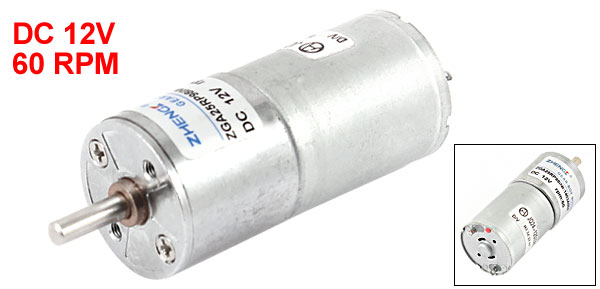 Product Name DC Geared Motor Rated Voltage DC 12V Speed 60 RPM Shaft Diameter 4mm/ 0.16" Motor Part Size 24 x 30mm/0.94" x 1.2"(D*H) Overall Size 25 x 56mm/ 1" x 2.2" (D*H) Main Color Silver Tone Material Metal Weight 55g Package 1 x DC Geared Motor - Reviews