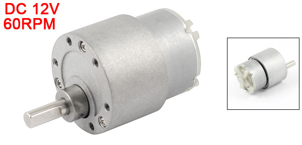 Product Name Gear Motor Rated Voltage DC 12V Rated Speed 60 RPM Shaft Size 15 x 6mm/0.6" x 0.24" (L*D) Motor Body Length 43mm/1.7" Motor Body Diameter 37mm/1.5" Total Length(Included Pin) 68mm/2.68" Material Metal, Electronic Parts Color Silver Tone Weight 143g Package Content 1 x Gear Motor - Reviews