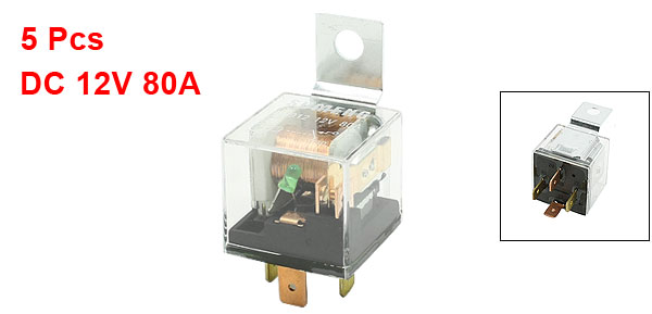 DC 12V 80A Clear Plastic Housing SPST NO Green Indicator Car Relay 5 Pcs