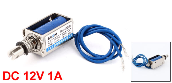 Main Color Silver Tone, Blue Brand DMiotech Country of Manufacture CHINA Model RM-0730B Cable Length 20cm/ 7.9" Action Form Push-Pull Type Material Metal, Electronic Parts Stroke & Force 10mm, 80g Net Weight 38g Package Content 1 x DC Solenoid Electromagnet Rated Voltage & Current DC 12V 1A Plunger Size 56 x 6.5mm/ 2.2" x 0.26"(L*D) Body Size 30 x 17 x 14mm/ 1.2" x 0.7" x 0.6"(L*W*H) - Reviews
