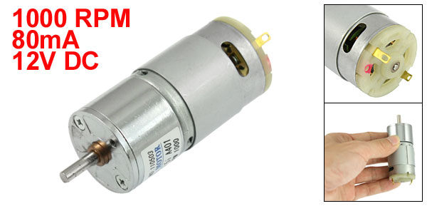 Product Name Gear Motor Rated Voltage DC 12V Rated Current 80mA Rated Torque 0.3Kg.cm Rated Speed 1000 RPM Shaft Size 12 x 4mm/0.47'' x 0.16''(L*D) Motor Body Length 58mm/2.3" Motor Body Diameter 29mm/1.1" Thread Diameter 2.5mm/0.1" Total Length(Included Pin) 77mm/3" Material Metal, Electronic Parts Color Silver Tone Weight 113g Package Content 1 x Gear Motor - Reviews