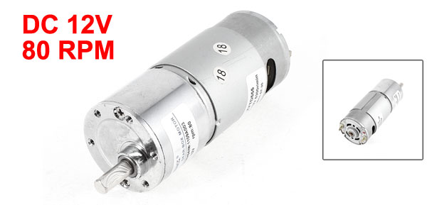 Product Name Gear Motor Rated Voltage DC 12V Motor Speed 80 RPM Gear Box Speed 5300r/min Shaft Size 15 x 6mm/0.6'' x 0.24''(L*D) Motor Body Length 30mm/ 1.2" Motor Body Diameter 37mm/ 1.5" Gear Box Size 57 x 37mm/ 2.2" x 1.5"(L*D) Total Length(Included Pin) 113mm/ 4.5" Material Metal, Electronic Parts Color Silver Tone Weight 317g Package Content 1 x Gear Motor - Reviews
