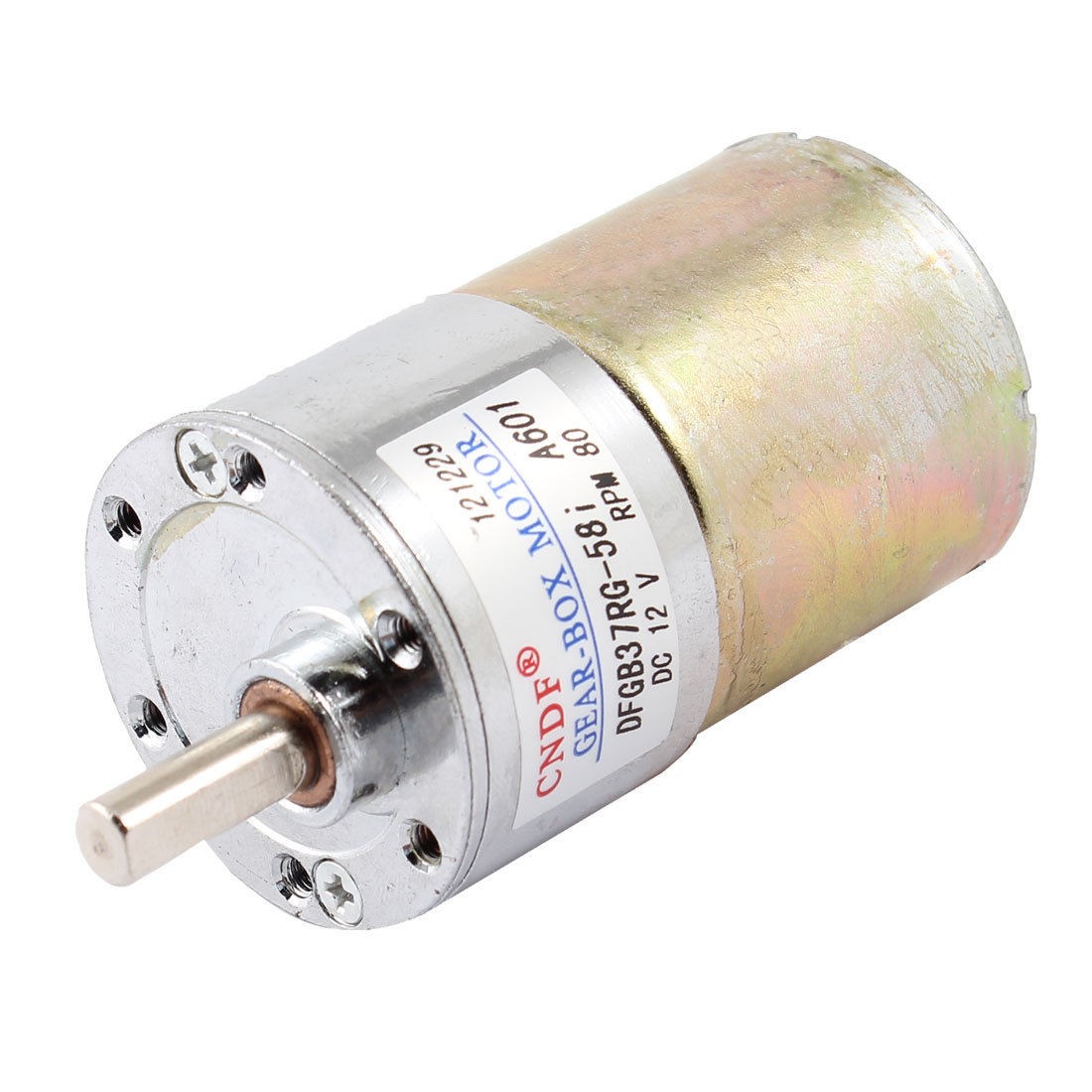 Product Name Gear Box Motor Rated Voltage DC12V Rated Speed 80 RPM Shaft Size 16 x 6mm/0.63" x 0.2"(L*D) Motor Body Size 58 x 35mm/ 2.3" x 1.4"(L*D) Total Length(Included Pin) 83mm/ 3.3" Material Metal, Electronic Parts Color Silver Tone, Brass Tone Weight 167g Package Content 1 x Gear Box Motor - Reviews