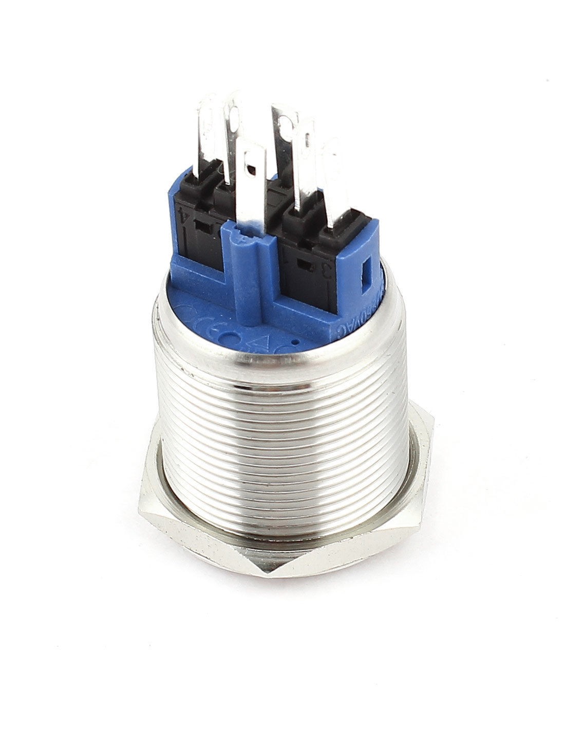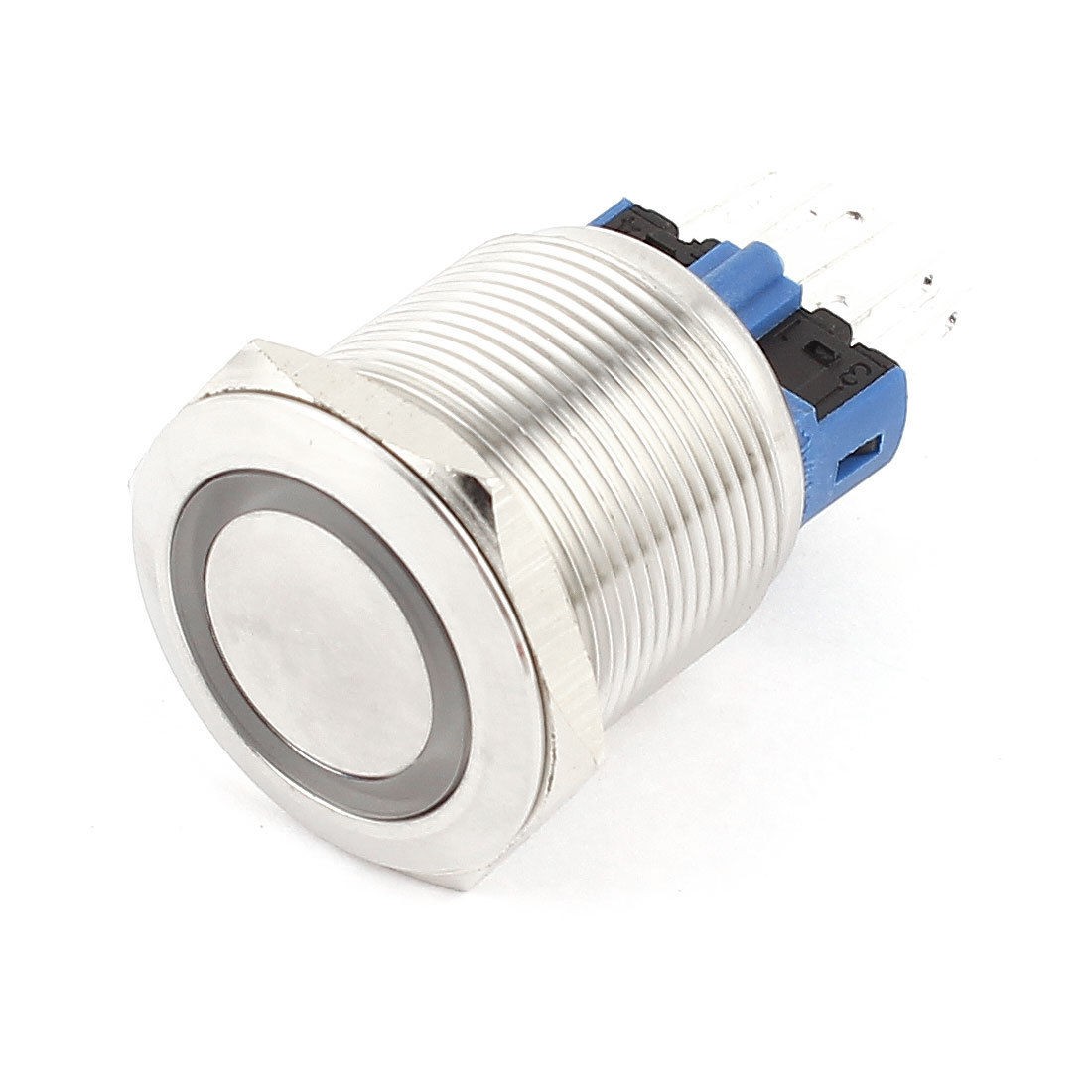 Item Name Push Button Switch Action Type Latching Type LED Type Angel Eye LED Head Shape Flat Head Contact 1NO 1NC, DPST Switch Rating AC 250V, 5A Lamp Voltage DC 12V LED Color Blue Pin Number 6 Thread Diameter 22mm/0.87" Total Size 38 x 25mm/1.5" x 1"(L*Max.W) Material Stainless Steel, Plastic, Electric Parts Housing Color Silver Tone, Blue Net Weight 26g Package Content 1 x Push Button Switch - Reviews