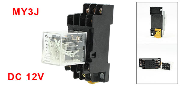 Product Name Electromagnetic Relay Model MY3J Coil Voltage DC 12V Contact Capacity 5A 250VAC /28VDC Type 3PDT Number of Terminals 11 Mount Rail Type 35mm DIN Rail Fixing Mount Hole Size 6 x 4mm/0.24" x 0.16"(L*W) Total Size (Approx.) 71 x 30 x 65mm/2.8" x 1.2" x 2.6"(L*W*H) Shell Material Plastic Main Color Black, Clear Blue Net Weight 64g Package Content 1 x Electromagnetic Relay - Reviews
