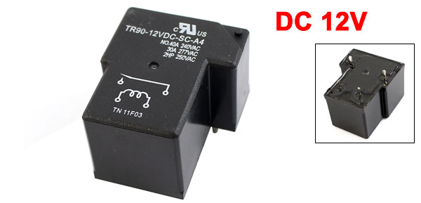 Product Name Relay Model TR90-12VDC-SC-A4 Contact Type NO NC DPST Coil Voltage DC 12V Rated Load NO:AC 240V 40A / AC 277V 30A