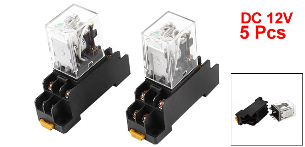 DC 12V Coil DPDT 8 Pin Green LED Power Relay 5 Pcs w Base Socket