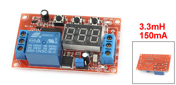 Product Name Time Relay Module Relay Type SRD-12VDC-SL-C Material Metal, Plastic, Electric Parts Input Voltage DC 12V Load 10A, AC 250V/125V, DC 30V/28V Overall Size 60 x 40 x 20mm/ 2.4" x 1.6" x 0.8" (L*W*H) Main Color Blue, Red Weight 27g Package Content 1 x Relay Module - Reviews