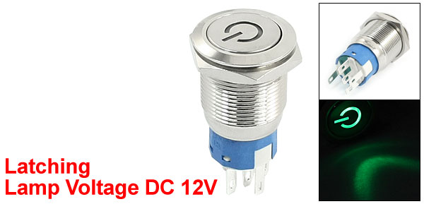 Item Name Push Button Switch Action Type Latching Type LED Type Angel Eye LED Head Shape Flat Head Contact 1NO 1NC, SPDT Switch Rating AC 250V, 5A Lamp Voltage DC 12V LED Color Green Pin Number 5 Thread Diameter 19mm/0.75" Total Size 40 x 22mm/1.6" x 0.9"(L*Max.W) Material Stainless Steel, Plastic, Electric Parts Housing Color Silver Tone, Blue Net Weight 19g Package Content 1 x Push Button Switch - Reviews