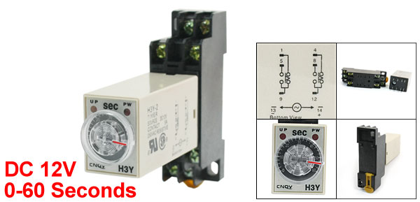 DC 12V H3Y-2 DPDT 0-60 Seconds Power on Timer Time Delay Relay w Base Socket
