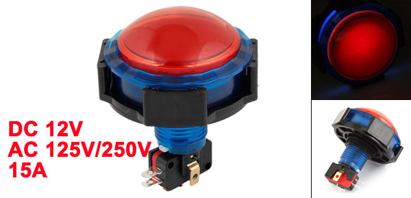 DetailsDC 12V Indicator Light SPDT Momentary Push Button Switch AC 125V 250V 15A  Product Name Push Button Switch Contact Type Momentary Action Type NO NC Com, SPDT Light Voltage DC 12V Light Color Red Rated Voltage & Current AC 125V/250V 15A Pin Quantity 5 Thread Diameter 24mm/0.94" Overall Size(Approx.) 67 x 84mm / 2.6" x 3.3"(Max.Diameter*Height) Main Color Red,Blue,Black Material Plastic, Electronic Parts Weight 72g Package Content 1 x Push Button Switch