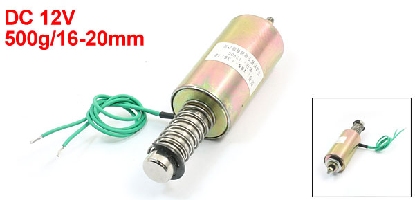 Product Name DC Solenoid Electromagnet Rated Voltage DC 12V Power 30W Type Pull Force& Stroke 500g/16-20mm Body Size 70 x 36mm / 2.8" x 1.4" (L*D) Plunger Bar Size 16 x 138mm / 0.63" x 5.4" (Max.D * L)