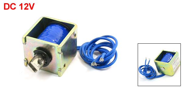 Product Name DC Solenoid Electromagnet Model ZYE1-0826 Material Metal, Electronic Parts Color Blue, BronzeTone Rated Voltage DC 12V Action Form Push Pull Body Size 26 x 25 x 22mm / 1" x 1" x 0.87"(L*W*H) Cable Length 23cm / 9.1" Plunger Rod Size 30 x 7mm / 1.2" x 0.28"(L*W) Weight 66g Package Content 1 x DC Solenoid Electromagnet