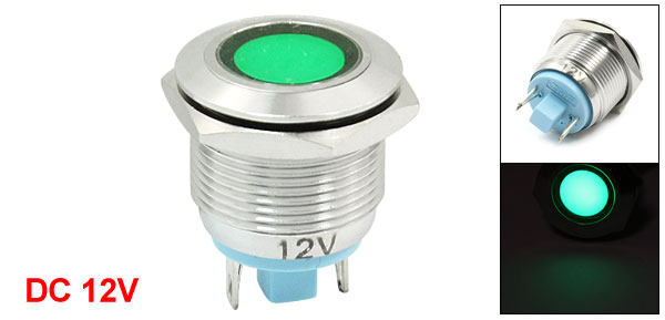 DC 12V Power Illuminated Green Light 19mm Signal Indicator Pilot Lamp