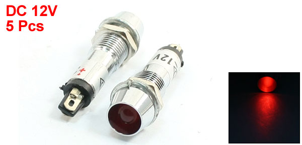 DC 12V PT1/16 Thread Red Pilot Lamps Indicator Signal Light 5Pcs