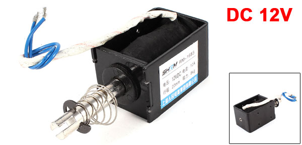 Product Name Solenoid Electromagnet Model RM-1683 Rated DC 12V Type Pull Currency 10A Force & Stroke 20mm 8kg Power On 50% Type Pull Type Hole Dia(Plunger) 16mm/0.63" Base Hole Dia 16mm/0.63" Plunger Bar Size 89.5 x 59.5 X 52mm/3.5" x 2.3" x 2.0"(L*W*H) Spring Length 23mm/0.9" Wire Length 30cm/11.8" Material Metal, Electronic Parts Weight 1037g Package Content 1 x Solenoid Electromagnet - Reviews
