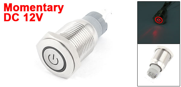 Item Name Push Button Switch Action Type Momentary LED Type Angel Eye Head Shape Flat Head Contact 1NO 1NC, SPDT Switch Rating AC 250V, 3A Lamp Voltage DC 12V LED Color Red Pin Number 5 Thread Diameter 16mm/0.63" Total Size 38 x 19mm/1.5" x 0.75"(L*Max.W) Material Metal, Plastic, Electric Parts Housing Color Silver Tone, Red Net Weight 15g Package Content 1 x Push Button Switch - Reviews