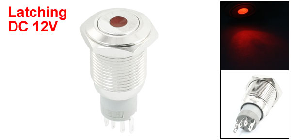 Item Name Push Button Switch Operation Type Latching Type LED Type Dot LED Contact 1NO 1NC Pin Number 5 Head Design Flat Head Lamp Voltage DC 12V Switch Rating AC250V, 5A LED Color Red Thread Diameter 16mm/0.63" Total Size 38 x 19mm/1.5" x 0.75"(L*Max.W) Material Metal, Electric Parts Housing Color Silver Tone, Red Net Weight 17g Package Content 1 x Push Button Switch - Reviews