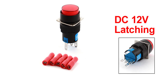 DC 12V Red Lamp SPDT Round Push Button Switch w Electrical Female Connector