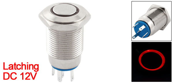 Item Name Push Button Switch Action Type Latching Type LED Type Angel Eye Head Shape Flat Head Contact 1NO 1NC, SPDT Switch Rating AC 250V, 3A Lamp Voltage DC 12V LED Color Red Pin Number 5 Thread Diameter 16mm/0.63" Total Size 27 x 22mm/1.1" x 0.87"(L*Max.D) Material Metal, Plastic, Electric Parts Housing Color Silver Tone, Red Net Weight 21g Package Content 1 x Push Button Switch - Reviews