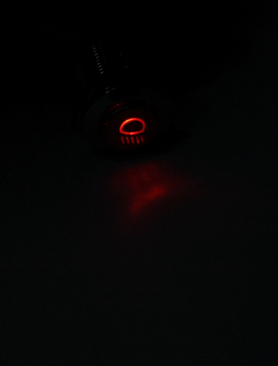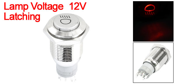 Item Name Push Button Switch Operation Type Latching Type LED Type Angel Eye LED Contact 1NO 1NC Pin Number 5 Head Design High Flat Head Lamp Voltage 12V Switch Rating 250VAC, 5A LED Color Red Thread Diameter 16mm/0.63" Total Size 38 x 19mm/1.5" x 0.75"(L*Max.W) Material Metal, Electric Parts Housing Color Silver Tone Net Weight 17g Package Content 1 x Push Button Switch - Reviews