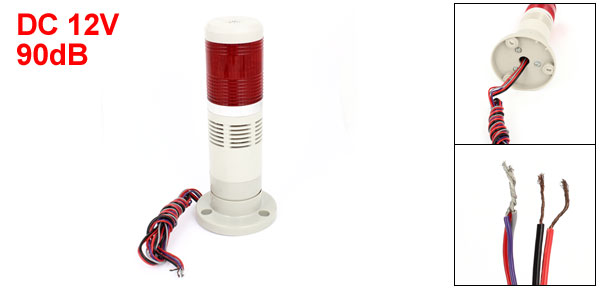 DC 12V Red LED Flash Industry Signal Tower Alarm Buzzer 90dB Light Lamp