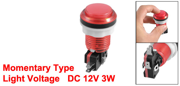 Product Name Push Button Switch Contact Type Momentary Action Type 1 NO, 1 NC Light Voltage DC 12V, 3W Light Color Red Rated Voltage/Current AC 250V/3A