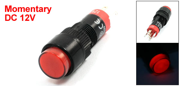 Item Name Push Button Switch Contact Type Momentary; SPDT Working Voltage AC 110-380V Light Color Red Lamp Voltage DC 12V Mounting Thread Diameter 9.5mm / 0.37" Button Cap Dia 10mm /0.4" Terminals 5 Pin Overall Size 3.8 x 1cm/1.5" x 0.39"(L*D) Material Plastic, Electronic Parts Weight 4g Package Content 1 Pcs x Push Button Switch - Reviews