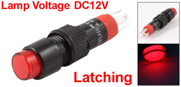 Item Name Push Button Switch Contact Type Latching; SPDT Working Voltage AC 110-380V Light Color Red Lamp Voltage DC12V Mounting Thread Diameter 8mm / 0.31" Button Cap Dia 7mm /0.28" Terminals 5 Pin Overall Size 3.8 x 1cm/1.5" x 0.4"(L*D) Material Plastic, Electronic Parts Weight 3g Package Content 1 Pcs x Push Button Switch - Reviews