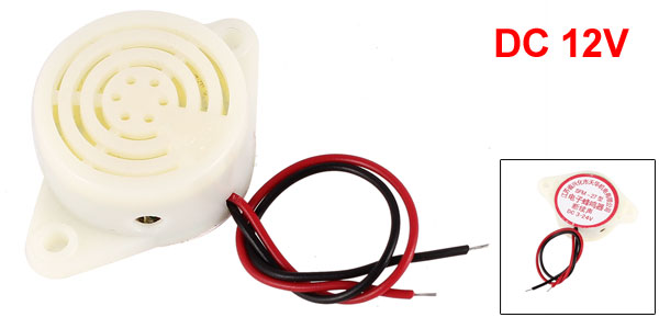 Product Name Electronic Buzzer Model No. SFM-27 Type Continuous Sound Rated Voltage DC 12V Working Voltage DC 3-24V Rated Current 30mA Sound Pressure 87-95dB Overall Size 48 x 30 x 15mm / 1.9" x 1.2" x 0.6" (L*W*T) Mounting Hole Diameter 3.8mm / 0.15" Wire Length 10cm / 4" External Material Plastic Color White Weight 8g Package Content 1 x Electronic Buzzer