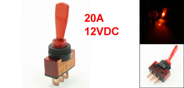 Product Name Toggle Switch Contact Type SPST Pin Quantity 3 Position 2 Position(ON/OFF) Rated Current 20A Rated Voltage 12VDC Button Lamp Color Red Total Size 6.5 x 2.8 x 2cm / 2.6" x 1.1" x 0.78"(L*W*T) Mounting Thread Diameter 12mm / 0.47" Main Color Red, Black Material Plastic, Metal Weight 18g Package Content 1 Pcs x Toggle Switch - Reviews