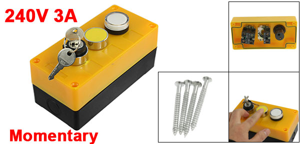 Product Name Push Button Station Working Voltage & Current AC 240V 3A Ui 600V Ith 10A Uimp 6KV Push Button Switch Action Type Momentary Selector Switch Working Mode 3 Positions Contact Type NO Light Color White Light Voltage DC 12V Material Plastic, Metal Button Diameter 2.8cm/ 1.1" Box Size (Approx.) 14.8 x 7.1 x 6.4cm/ 5.8'' x 2.8'' x 2.5"(L*W*H) Case Color Orange, Black Net Weight 312g Package Content 1 x Push Button Station - Reviews
