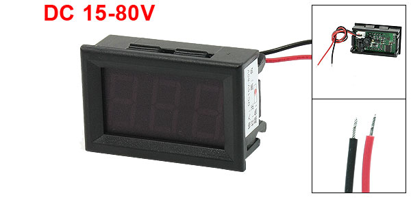Product Name LED Voltmeter Display 3 Digits 7 Segments Red LED Voltage Range DC 15-80V Zero Seting Auto Total Size 48 x 29 x 22mm/1.9" x 1.1" x 0.9"(L*W*T) Mounting Size 45 x 27mm/1.8" x 1.1"(L*W) Cable Length 15cm / 5.9" Casing Material Plastic Color Black Net Weight 19g Package Content 1 x LED Voltmeter - Reviews