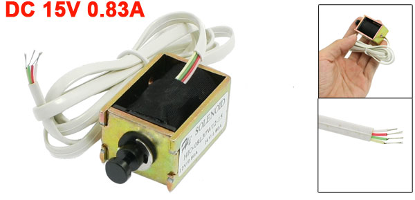 Product Name Open Frame Solenoid Model 0837L-15I18 Material Metal, Electronic Parts Rated Voltage DC 15V Action Form Pull Type Stroke 5mm