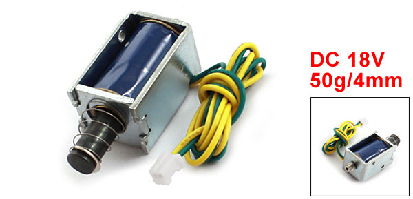 Product Name DC Solenoid Electromagnet Rated Voltage DC 18V Type Push Pull Rated Current 1A Power 18W Force& Stroke 50g/4mm